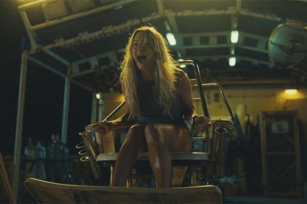 Well, it is, mainly because Dangerous Animals has one killer idea at its core. This notion of shark-as-murder-weapon for a psychopath obsessed with his own brush with a shark-related death is a solid one, referencing other, older horrors and genres without feeling like a simple rehash, and do you know what else is great? The sharks here are…just sharks. They’re not genetically-modified sharks, surprise megalodons or inexplicably smart, vengeful sharks. Instead, the sharks here just do what sharks oh-so occasionally do (to humans, at least), and only then with some heavy encouragement from shark fanboy Tucker. Similarly, the character of Tucker doesn’t get (or need) an overly busy backstory. We learn a little, but he’s still kind of a closed book, a man tinged with de rigueur misogyny, but otherwise a seemingly affable, music loving, down to earth bloke. It’s hard not to see him in similar terms to Mick Taylor from 2005’s Wolf Creek: these two share the same instinct for picking off vulnerable, itinerant tourists by seeming like the salt of the earth, even if Tucker feels more like some sort of Discovery Channel-spawned monster, and Mick’s more SBS.