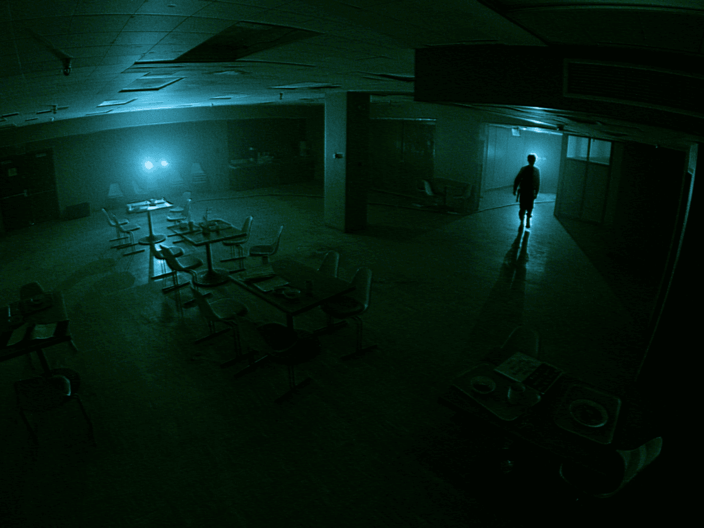 The Wilshire Infirmary is a deserted hospital; the film itself starts when we witness the arrival of a hospital security guard called Edward (Paul Syre) who, to judge by his tendency to get lost in the halls, is a rookie here. Indeed it’s his first shift, and he’s made none too welcome by old hand Lester (Mark Anthony Williams), who’d rather sleep in his office than get into the rigmarole of showing the new guy the ropes. The use of bodycams brings the film down to eye-level, contrasting with the surveillance cameras which are our first interface. This allows us, at least some of the time, to look our characters in the eye. We also learn that the building is due for imminent demolition – so, presumably, security is on-site to prevent break-ins or thefts, or perhaps even to prevent people trying to get in to make a found footage film of their own. It’s boring, but stable work for our two protagonists, each of whom seems to have left their previous employment under a cloud: Lester used to be a cop, and Ed was in the military.