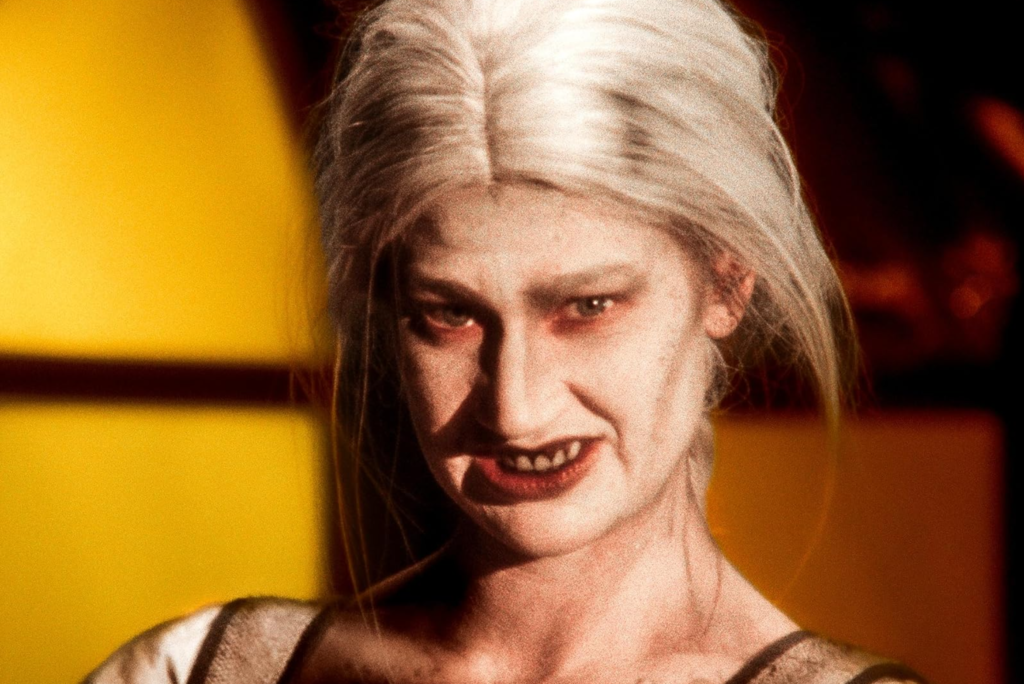 Dead Lover (2025) wears its non-existent budget on its sleeve as a point of pride, looking partly like a 1920s silent film (cosmetics, wigs and all) and also somewhere between Ed Wood and Garth Merenghi’s Darkplace – though with extra gurning. Whether it’s all a choice or not quite, it also deliberately blurs its timeline: some of the costumes and hair look like something from the 18th century; some of the accessories (and fabrics) look positively 1980s. There’s also the small matter of the ground-breaking male fertility treatment; all of this makes an initial impact, true, but once seen and acknowledged, it all starts to feel like diminishing returns. Once you’re immersed in the film’s visuals, you start to scan around for different aspects to enjoy. So there’s a script (deeply self-effacing, blending jokes with accentism, cliches and fart gags) which relies heavily on dramatic monologue, voiceover and stage play elements, such as the presence of a dramatic Chorus. Glowicki, who also co-wrote Dead Lover, winds up carrying a lot of the film: in a project with such a small cast, she is responsible for much of the film’s ongoing tone, pace and style, too, right down to sex scenes and Victor Frankenstein-akin experiments, all in the service of keeping her lover around for good. There’s also a number of set pieces which must have been fun to storyboard, and some deliberately provocative and unflinching scenes.