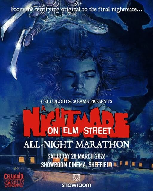 That was the more than tempting carrot dangled in front of hungry horror fans by Sheffield horror festival Celluloid Screams, here breaking out of its extended weekend format to bring one of several events it will be holding this year outside of the main event. Cell’s previous overnighters have featured five unrelated films, but with an extra title on the slate to work through Krueger’s history, how would it affect those brave/stupid enough (delete as applicable) to take on the challenge? Considering the premise of the series, it was apt to use the tagline “Don’t fall asleep” but did I, or anyone else, drift off before the evening, and most of the following morning, was through?