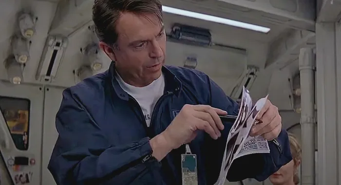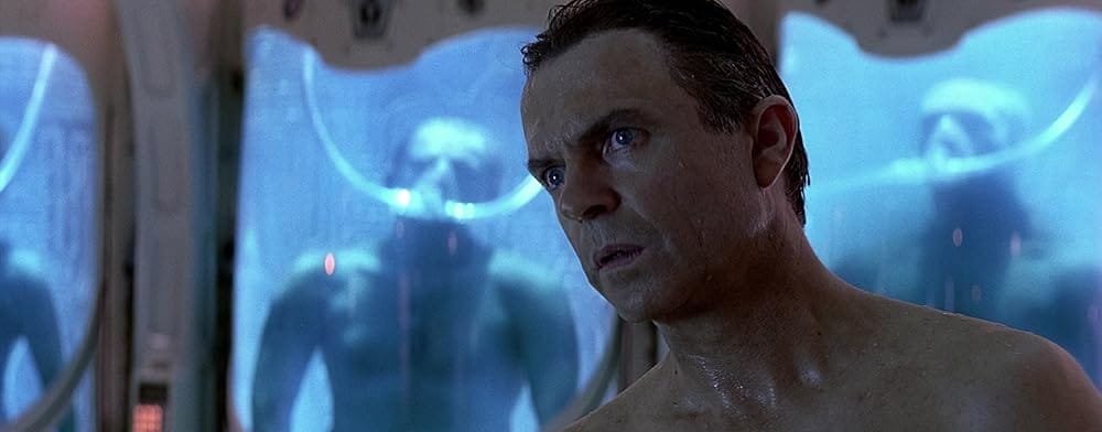His Dr. William Weir is the most complex character in these three movies, and Neill’s performance here is the most technically demanding. Essentially, what he has to do is play three versions of the same man across the movie’s runtime and has to make each one feel like the natural and terrible consequence of the one before. His first Weir is a man totally hollowed out by grief; his wife’s suicide haunts his every interaction; every quiet moment and every time Neill lets the professional surface slip just a little, we see how enormous the absence beneath is. Neill doesn’t play the grief as distraction, but foundation. Weir can’t separate his obsession with the Event Horizon from his loss, as the ship represents something more than scientific achievement. On some level, it represents the doorway back to the person who is no longer there.